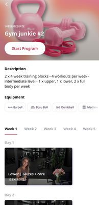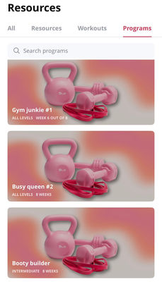Workout programs: An ever-growing library of structured 8–12 week workout programs you can start anytime and work through at your own pace